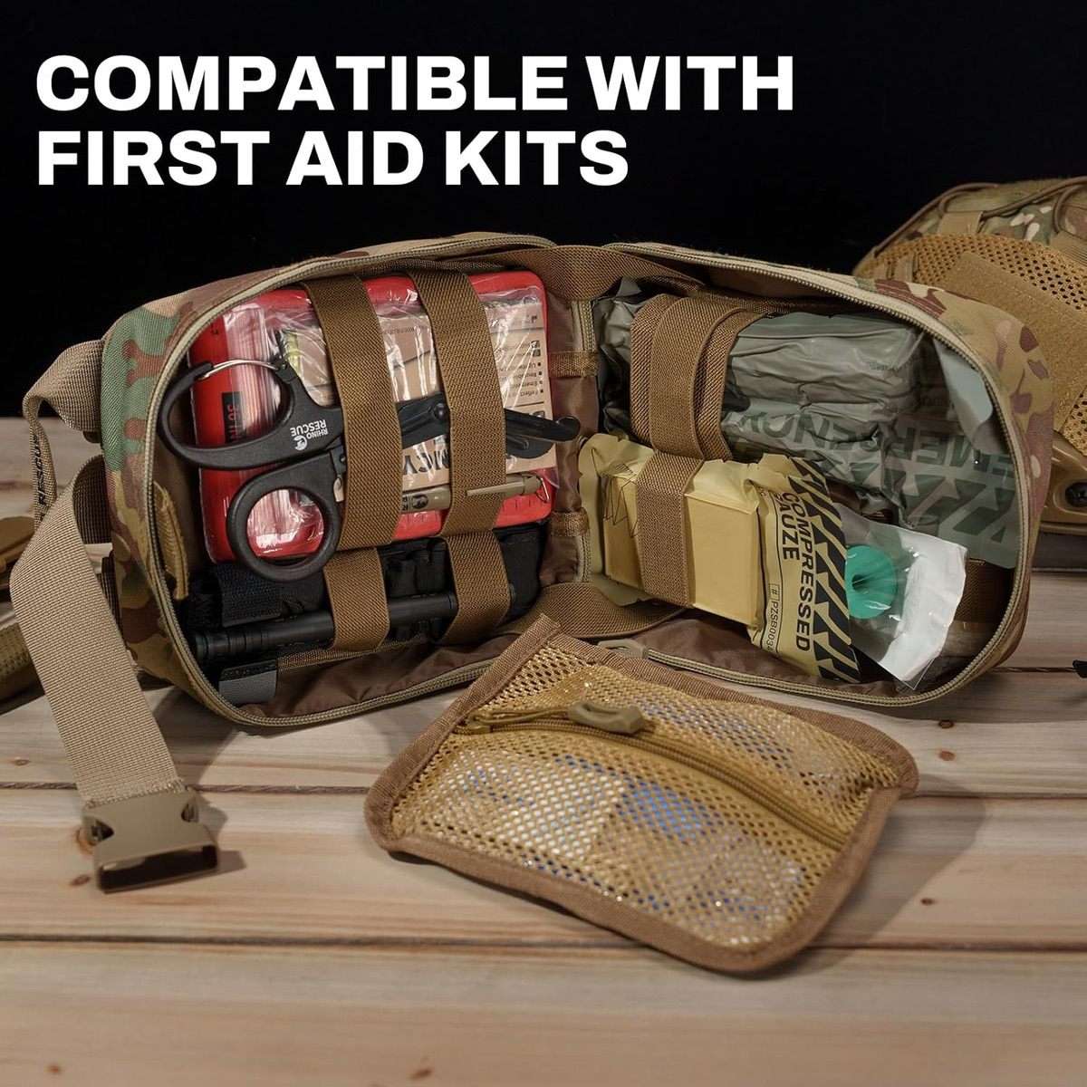 - Multiple Use – The sterile compressed gauze can be used to control hemorrhage in conjunction with a compression bandage, and also used as a backing gauze for hemostatic dressings or for minor wound bandaging. It’s an essential trauma dressing in first aid kit.